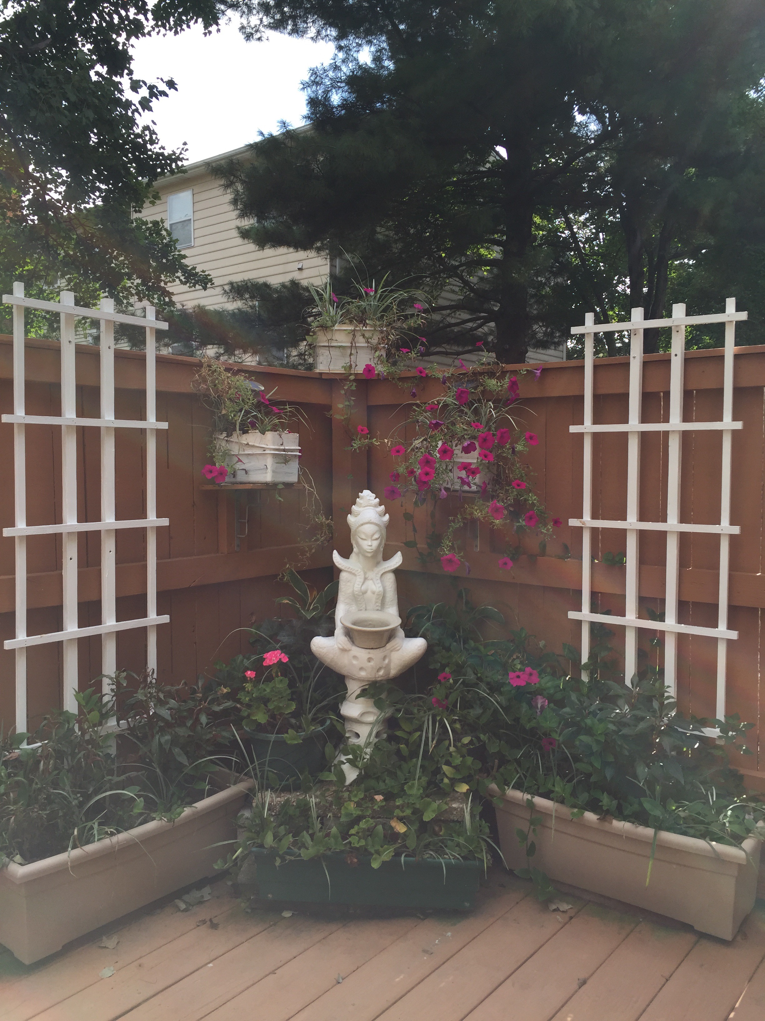 The last thing I did before I left my sleeping grandmother was walk out onto her back patio. It was beautiful outside, the summer heat was finally beginning to let up, and a lovely breeze rustled the staked tomato leaves against the arched trellis. A beautiful wrought iron table and chairs stood among the carefully placed flowers and vines. I wondered how a woman who carries such a strong, misplaced anger for her own daughter in her heart could create such a beautiful, peaceful retreat in her tiny sliver of a backyard.